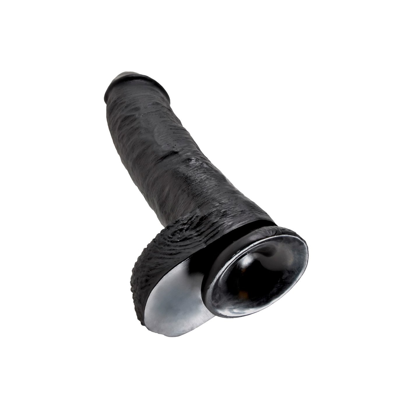 This dildo is in a realistic penis shape and has bulging glans, pronounced veins and large testicles. Its slightly curved shape means that it can provide spot-on stimulation for every pleasure spot. The strong suction cup means that it sticks securely to surfaces so that it can be ridden wildly. A little pleasure tip: this fancy dildo can be attached to a harness because it is also compatible with strap-ons!