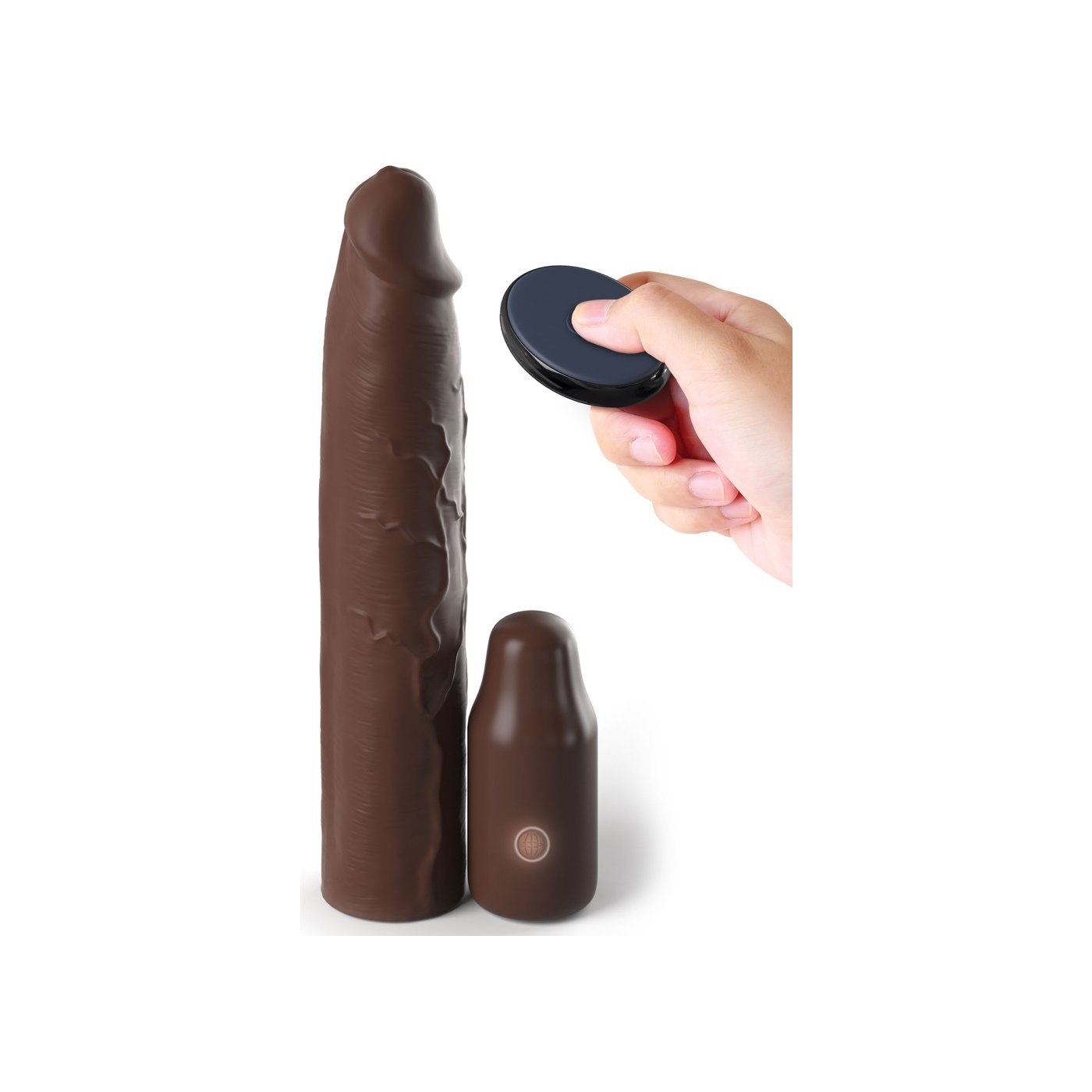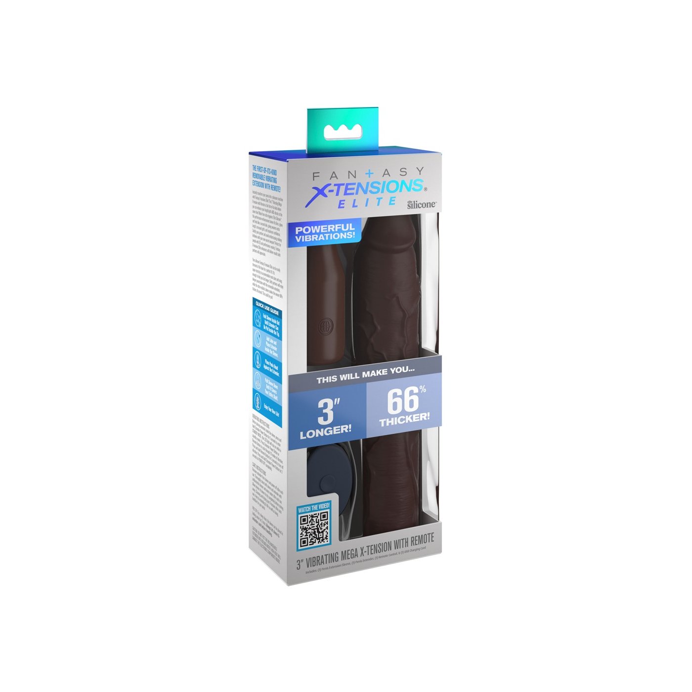 The penis sleeve 3" Vibrating Mega X-tension with Remote from Fantasy X-Tensions Elite brings the penis in excellent and vibrating shape quickly and easily for fulfilling moments of pleasure. The tight sleeve supports an erection effectively and can be easily put on the penis. The sleeve can also be trimmed at the base for a perfect fit.