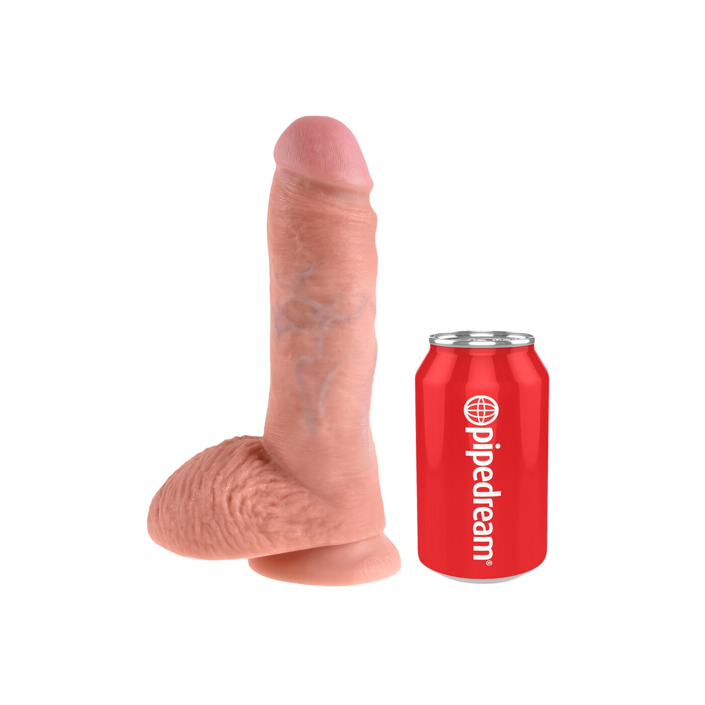 This dildo is in a realistic penis shape and has bulging glans, pronounced veins and large testicles. Its straight shape means that it can provide spot-on stimulation for your pleasure spot. The strong suction cup means that it sticks securely to surfaces so that you can ride it wildly.