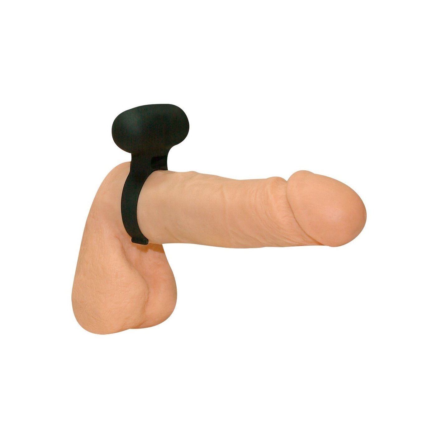 Vibrating cock ring in a clamp shape for an intense blood flow restriction. Includes an attachment with a vibro-bullet that stimulates either the testicles or the clitoris, depending on how it is worn. Offers 4 vibration modes. The silky-soft Soft Touch texture leaves a gentle feel on the skin. With a wired remote control. Ring Ø 3.5 cm (expandable). ABS, PU coating. Please order 2 AA batteries separately.
