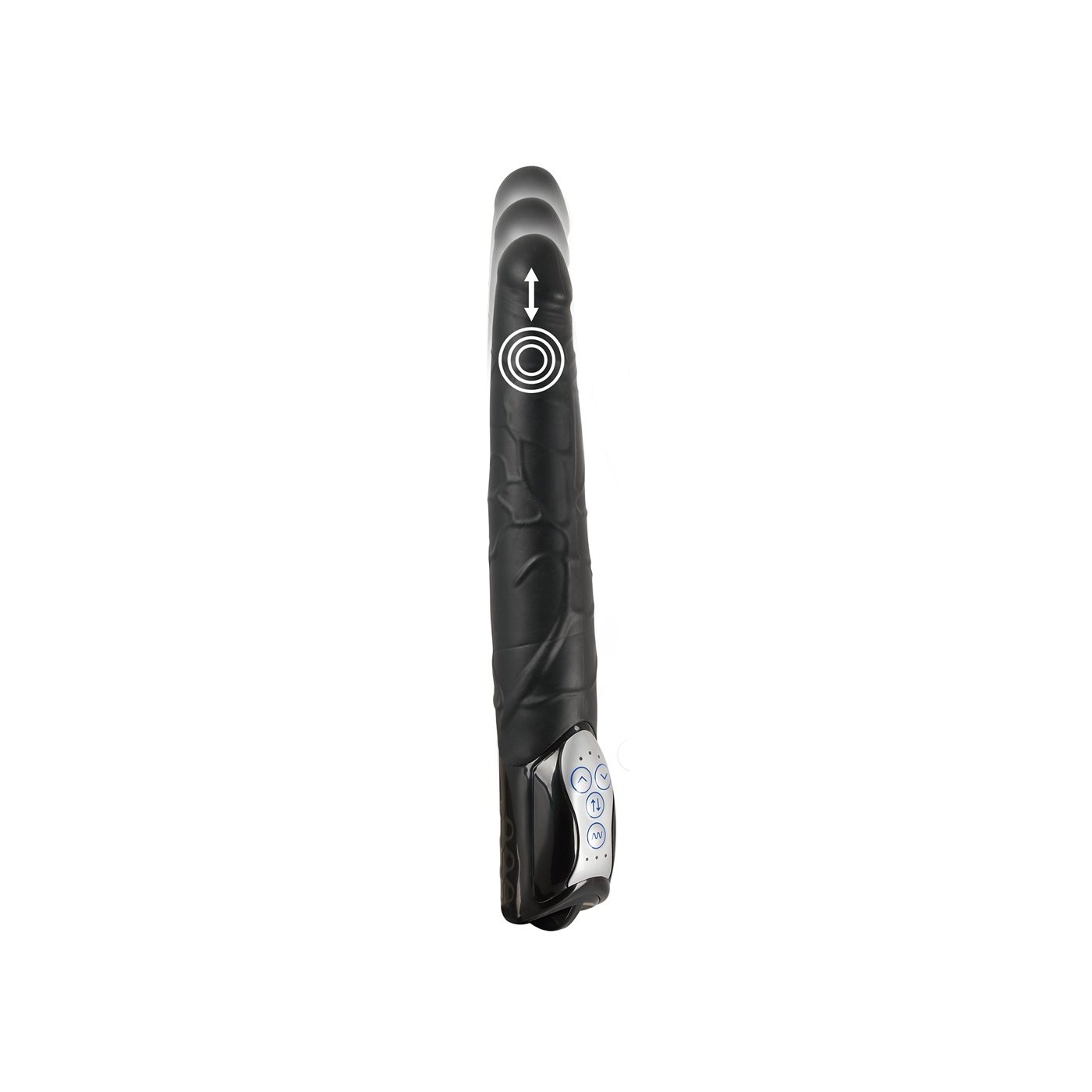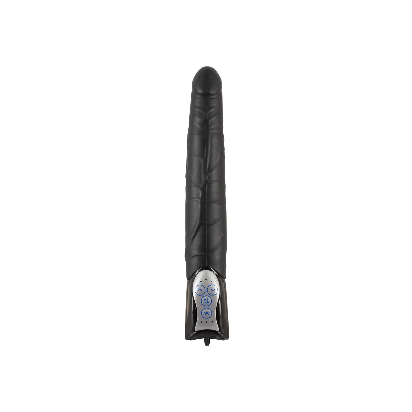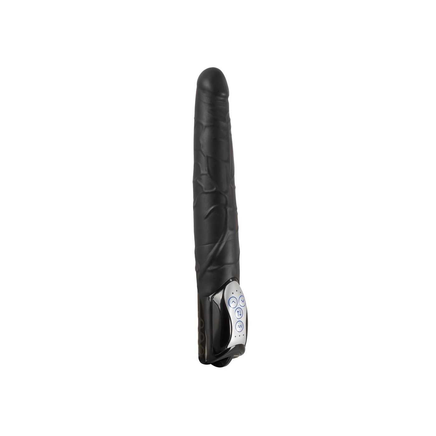 This vibrator is great because it has 3 thrusting speeds and 7 vibration modes. Both functions can be controlled separately for individual stimulation from the pronounced glans and veins on the shaft. Please order batteries separately (3 x AA).