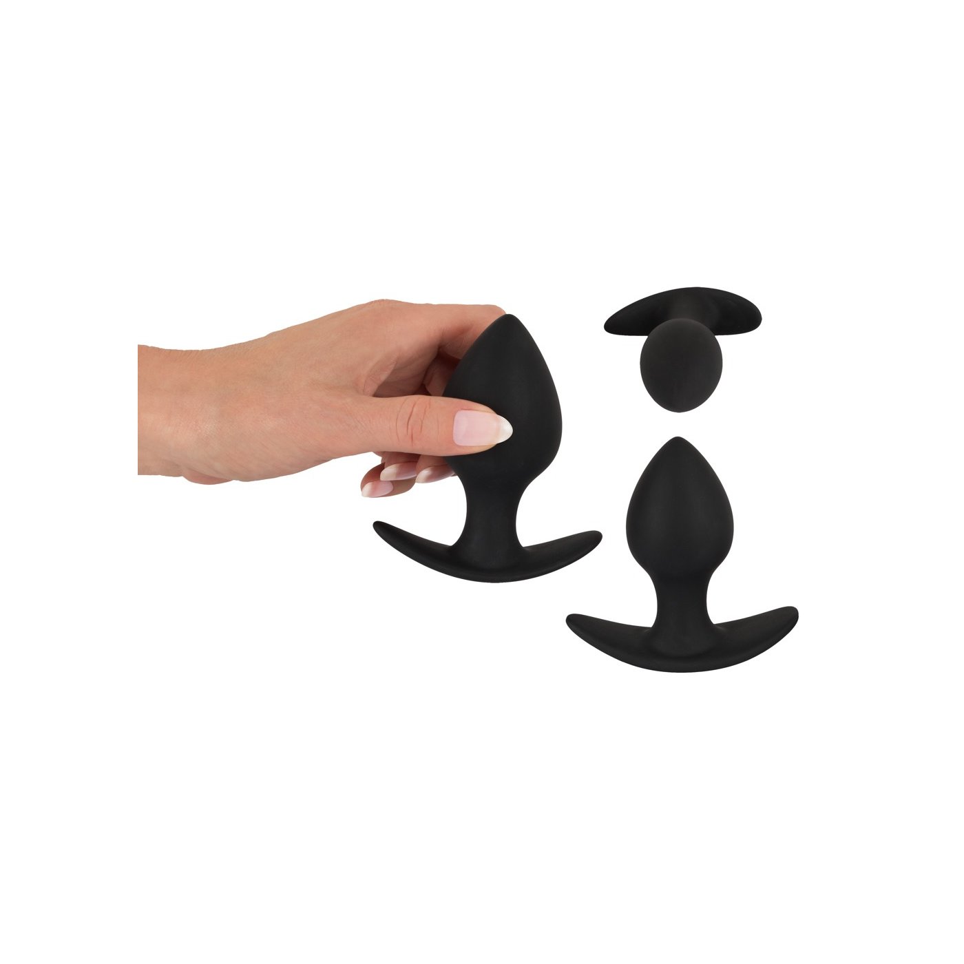 3-piece butt plug set with a wonderful soft texture. The different sizes are perfect for gradual anal training. The plugs are extremely easy to insert because of their cone shape and they provide a very fulfilling feeling. With an extra large base for secure fit. They are really easy to use.