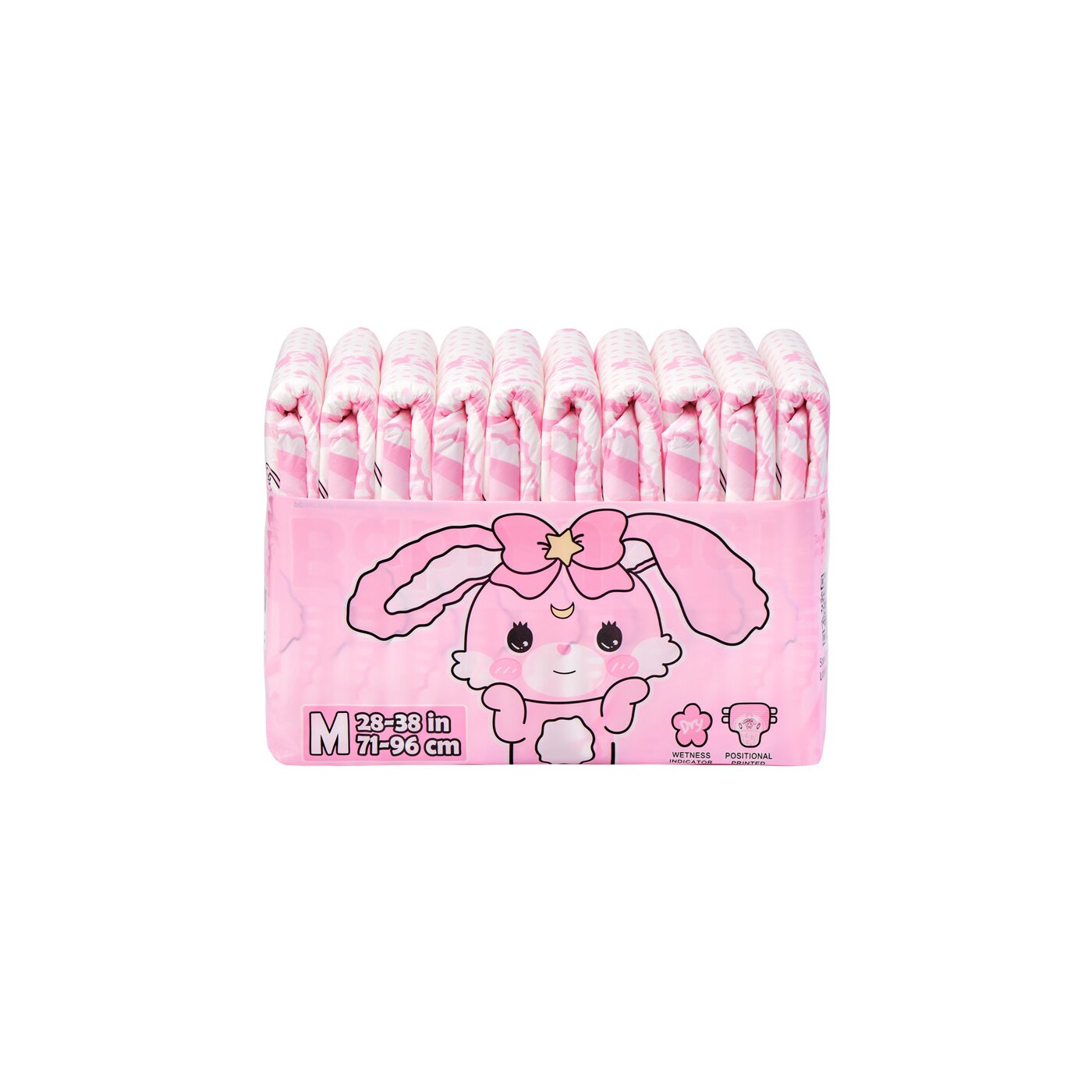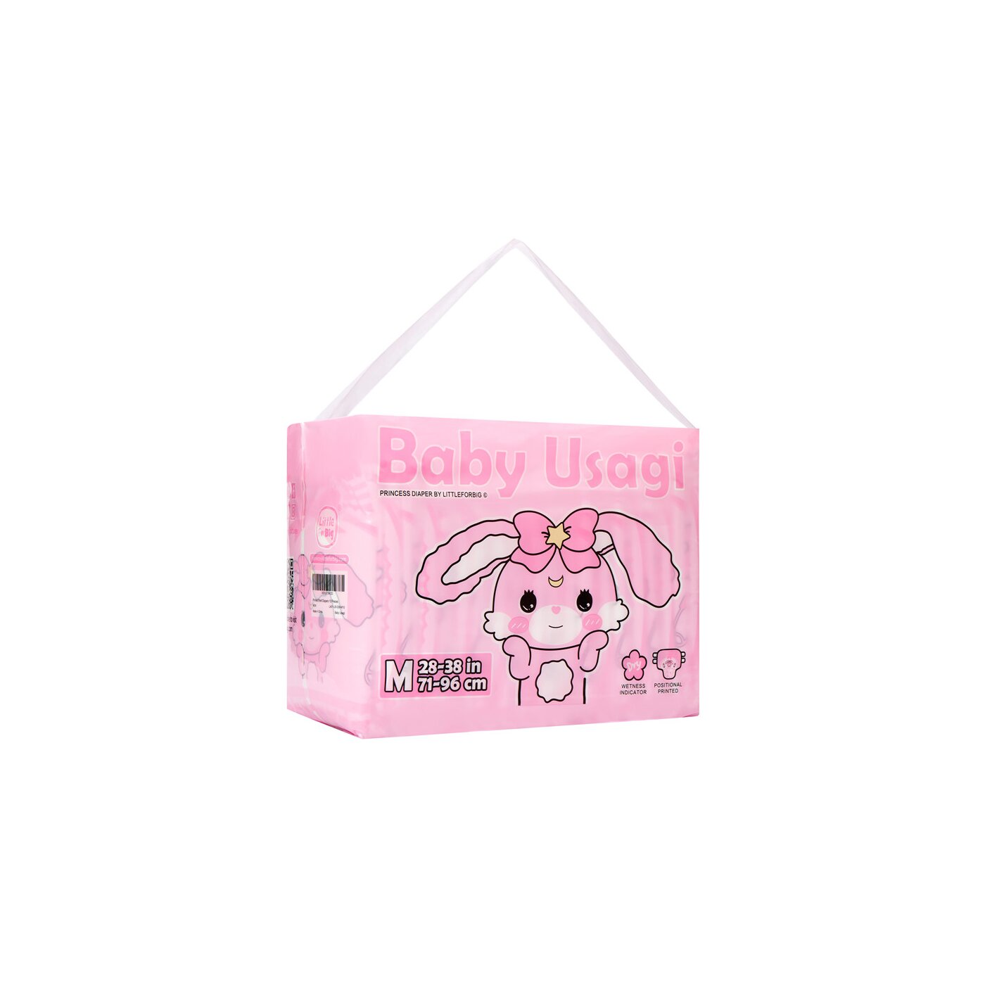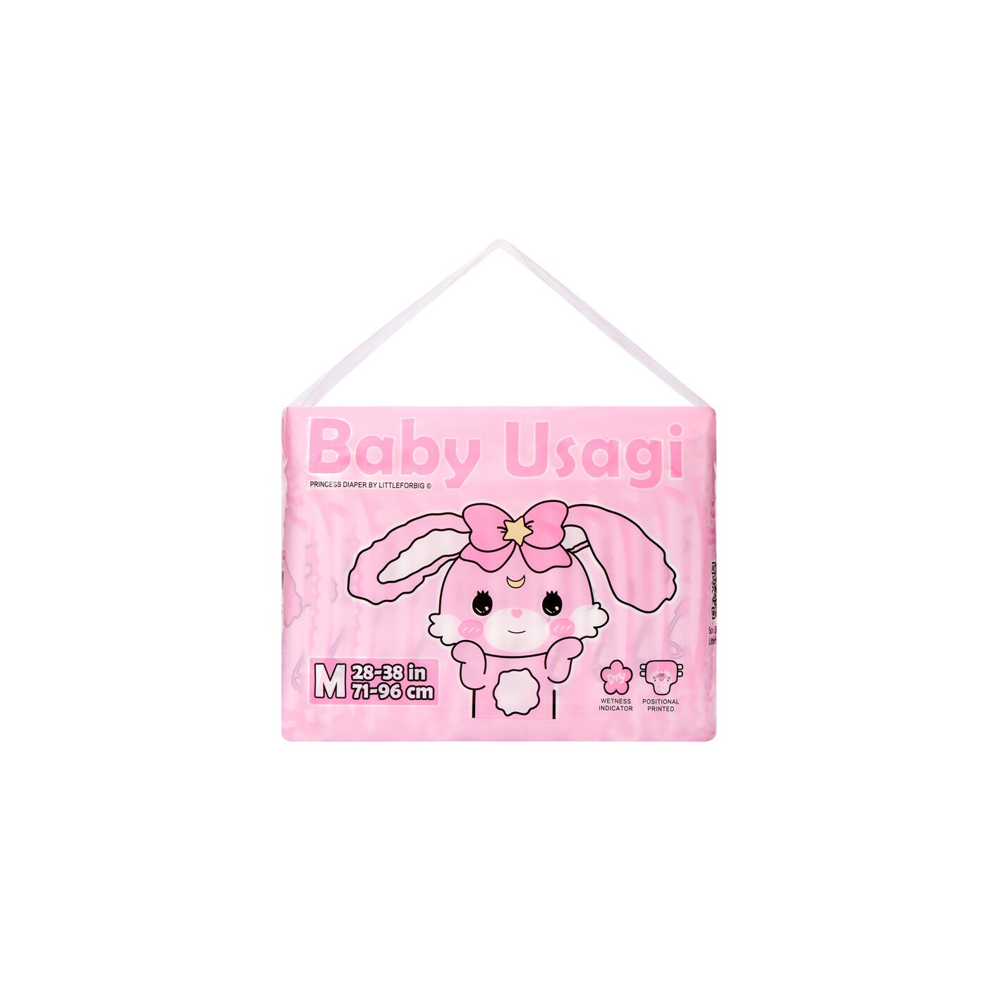 Das nostalgische Positional-Print-Design zeigt einen großen, liebevoll gestalteten „Baby Usagi“ auf der Vorder- und Rückseite der Windel 🐰💗.
