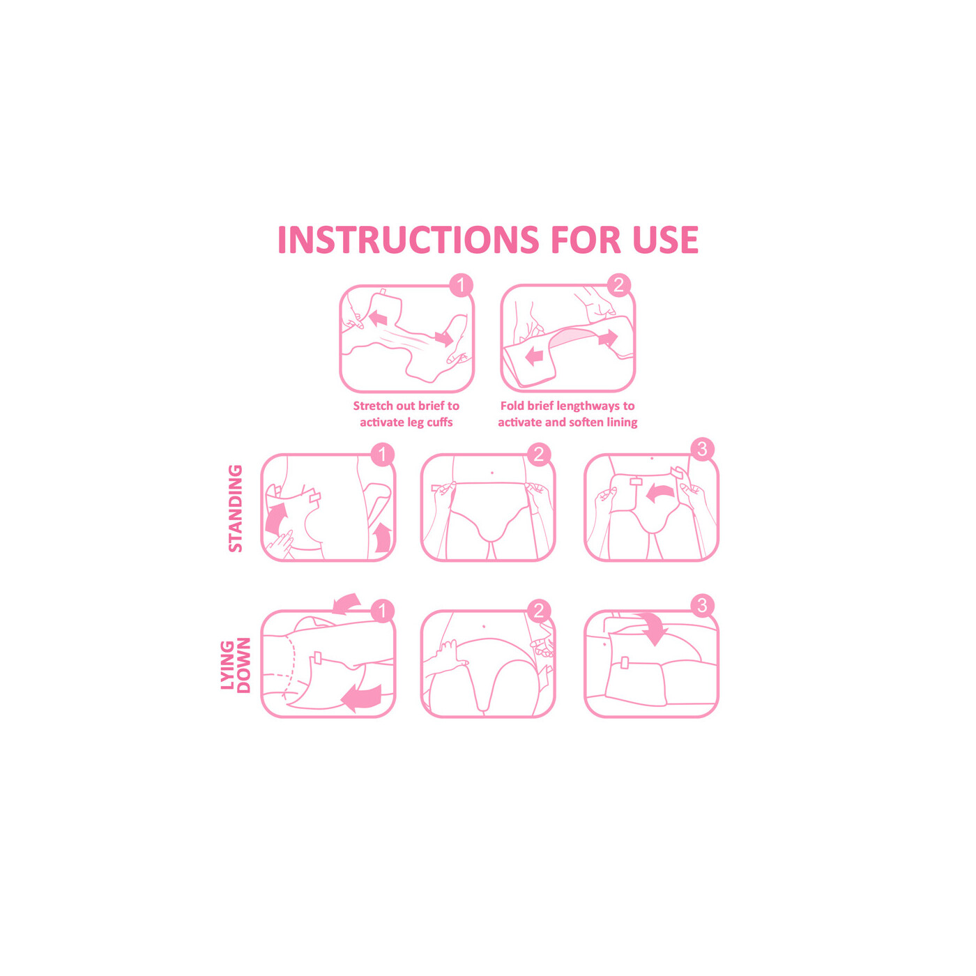 Vier verstellbare Klebebänder sichern einen perfekten Halt, und die dehnbaren Beinbündchen mit stehendem Auslaufschutz garantieren maximale Sicherheit und Passform – Tag und Nacht. 🌙