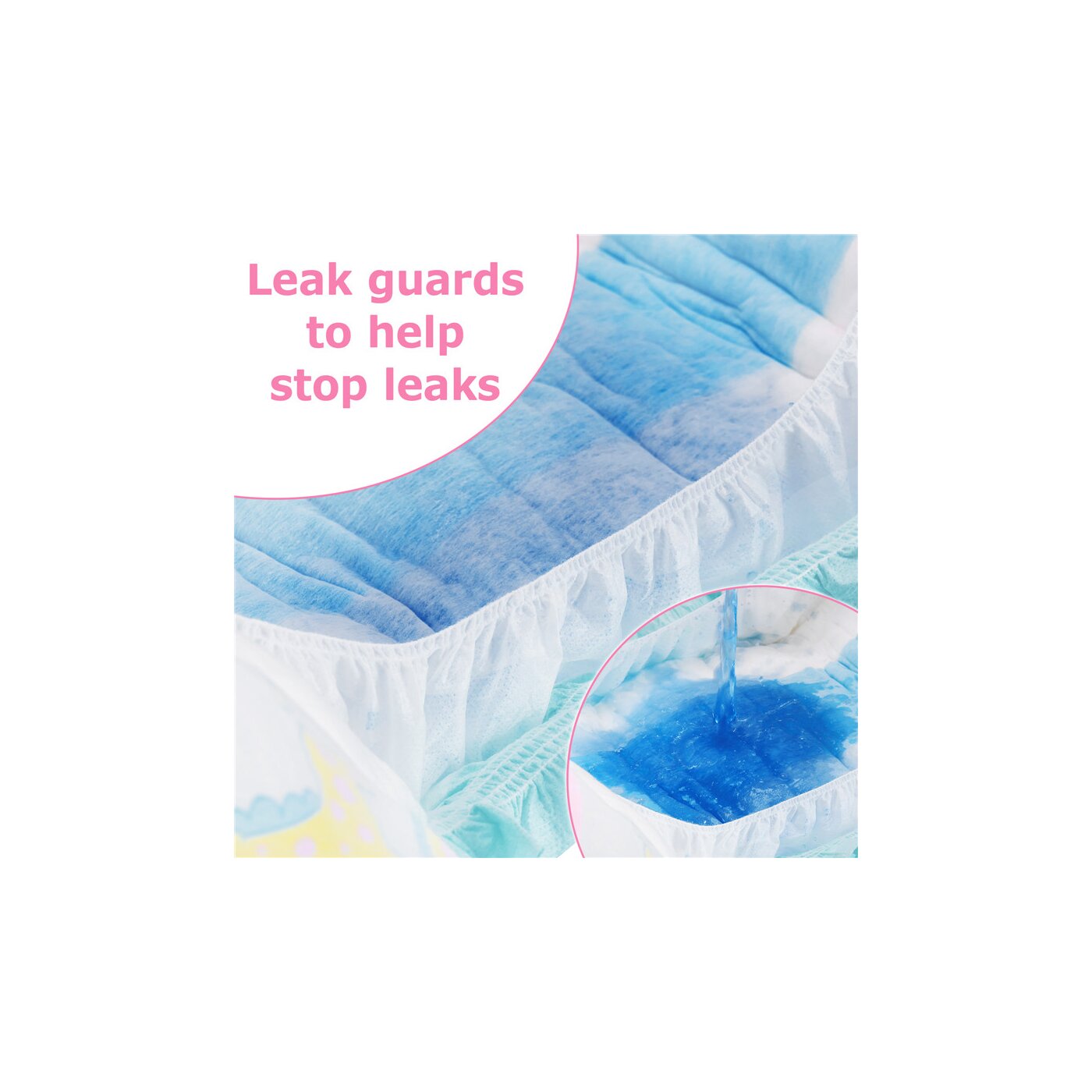 Inside, the plush nonwoven padding with a fast-absorbing core and standing leak guards keeps your skin dry and pampered all day or night.