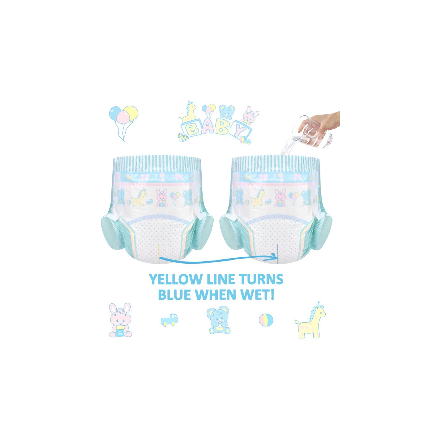 Featuring cute animal prints (including elephants, bears, and giraffes) and a color-changing wetness indicator, the yellow line turns blue when wet, providing a realistic ABDL touch and extra assurance of dryness. 💛💧