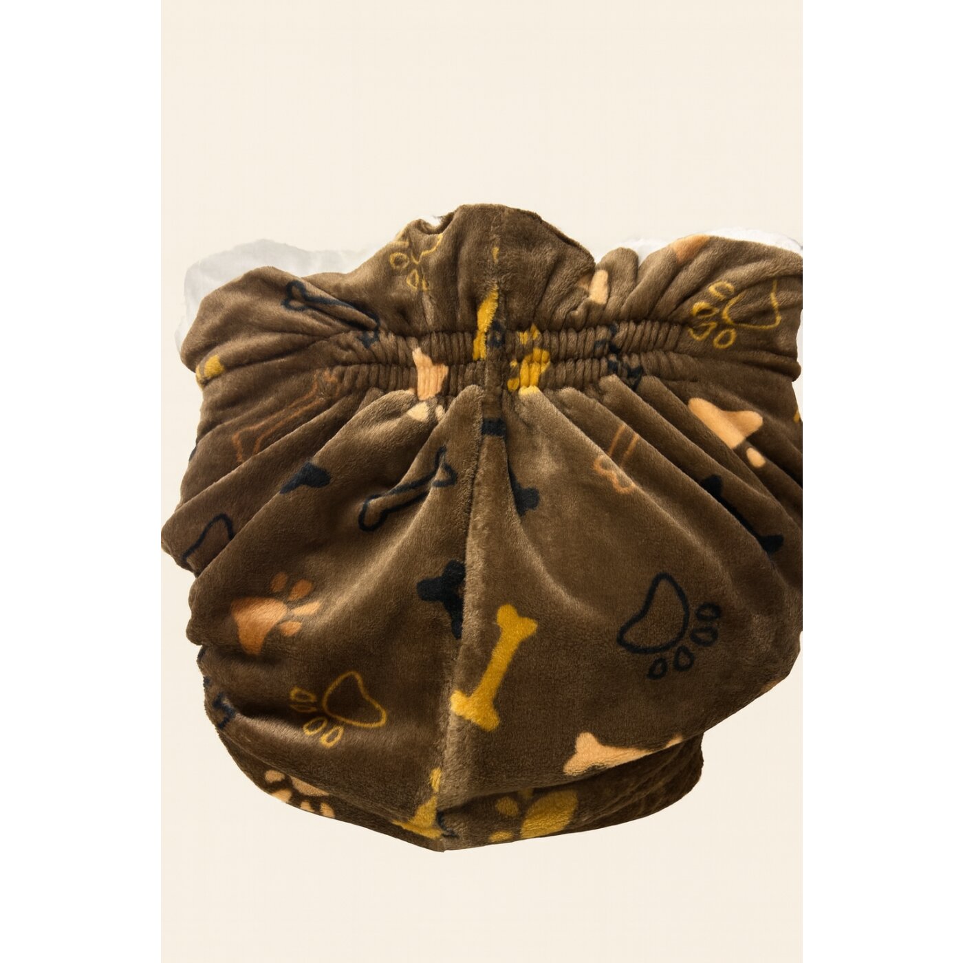 The “Puppy Dream” Omutsu is a soft cloth diaper for adults who long for comfort and playful design. The cozy fleece in a warm cream tone is printed with cute paw prints and bones in brown, beige, and black – perfect for animal lovers. A soft, absorbent lining ensures a comfortable wearing experience. Whether for ageplayers, diaper lovers, or just for relaxation – this diaper quickly becomes a favorite. 💛