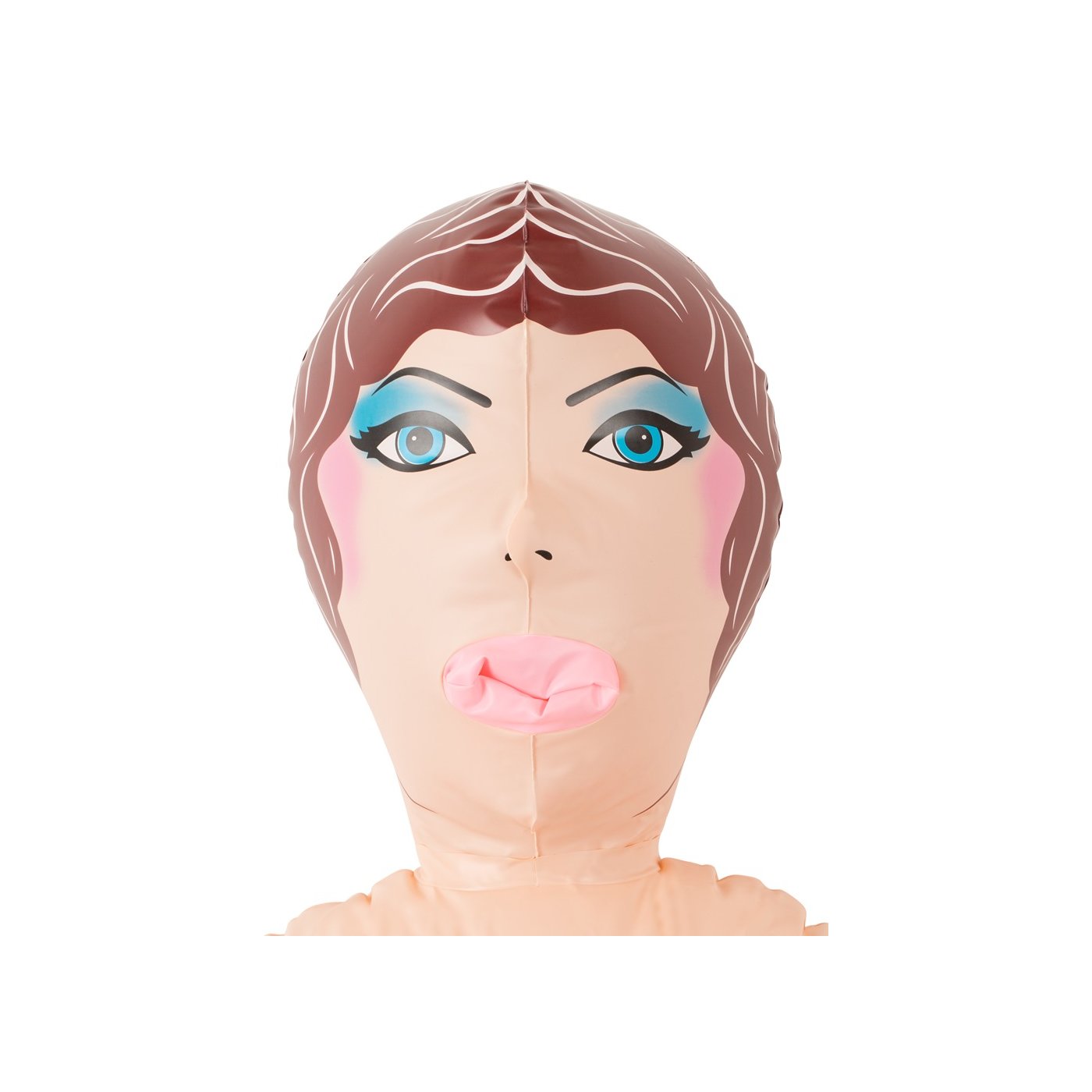 Diese wunderschöne Dame, mit dem aufgedruckten Gesicht und Haaren, hat 3 einladende, enge Liebesöffnungen. In stehender Position, mit eingeknickten Armen, zu einer Umarmung geöffnet.