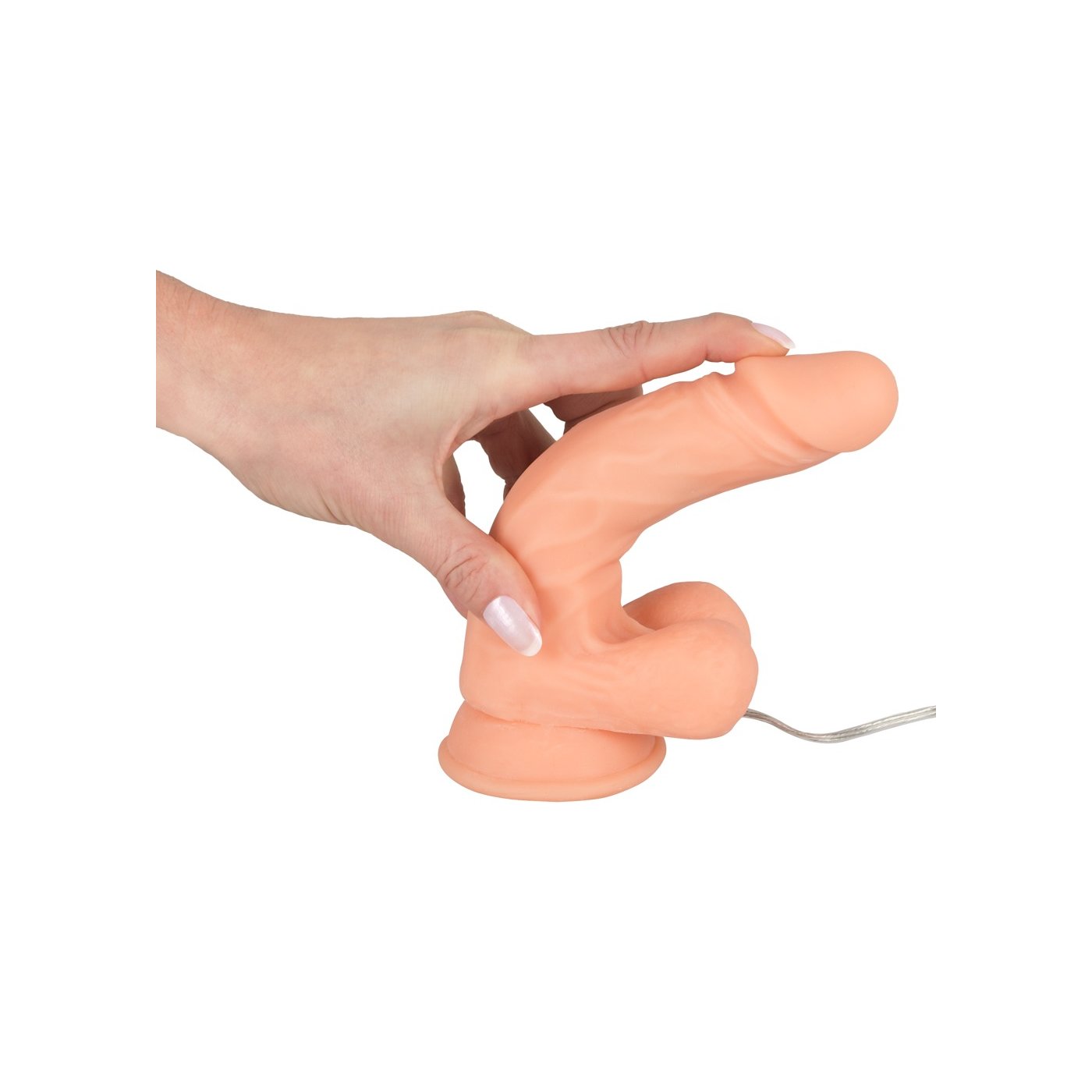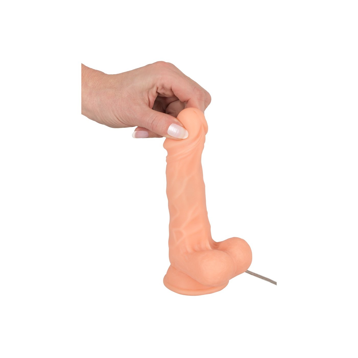 Battery-operated realistic vibrator with a suction cup, a remote control on a wire and multi-speed vibration. In an authentic design with bulging glans, pronounced veins and testicles. For sex that's even more fun! TPE, PP.