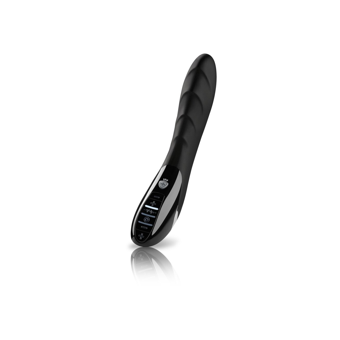Vibrator with a stimulating structure. Its two lots of vibrations and electrical current pleasure simultaneously without the need for an additional device or cable.The eight vibration programs, five different stimulating currents and a programme that helps her train her pelvic floor muscles can easily be adjusted. 27 cm long, Ø 4 cm. Rechargeable using the included USB-cable. Material: silicone, ABS.