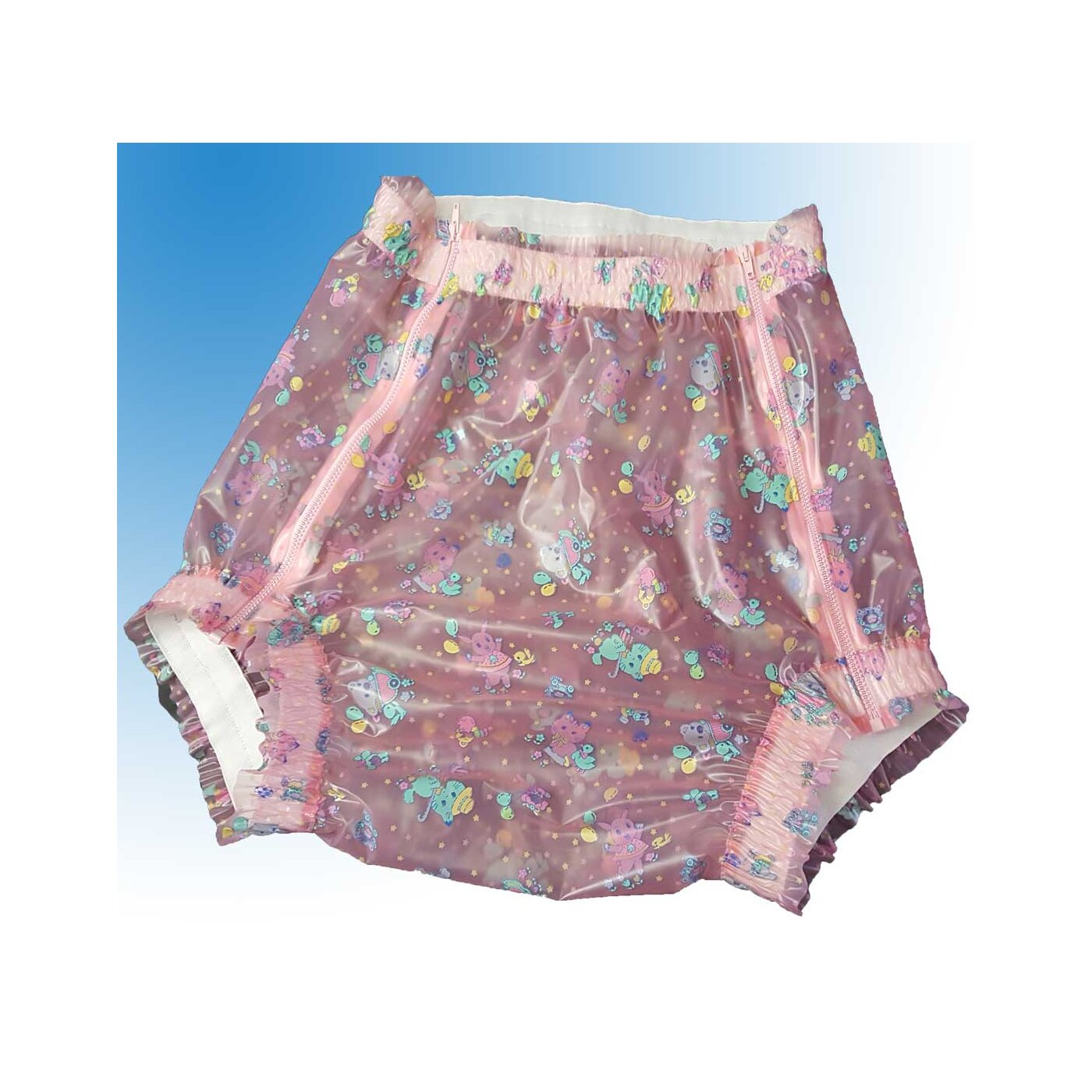 The hipster pant with double zipper and extra wide elastic waistband and legs is a versatile garment available in different materials and colors. It is specially designed for lovers of ABDL (Adult Baby/Diaper Lover), DL (Diaper Lover), sissies and teen babies role play.