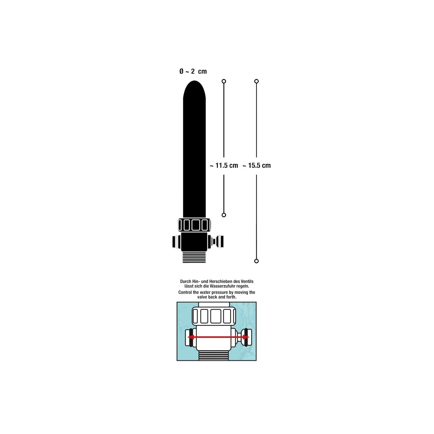Alu-Intimdusche Total Splash von You2Toys mit 5 Spritzlöchern und handelsüblichem Duschschlauchgewinde. Mit speziellem Ventil zur bequemen Reduzierung der Wassermenge und des Wasserdrucks.