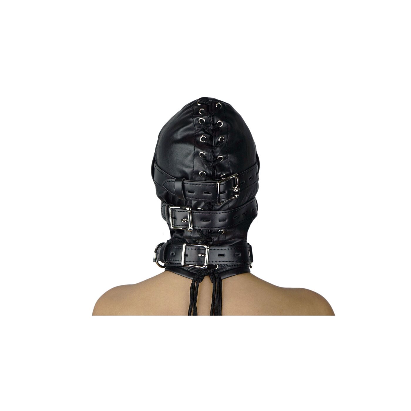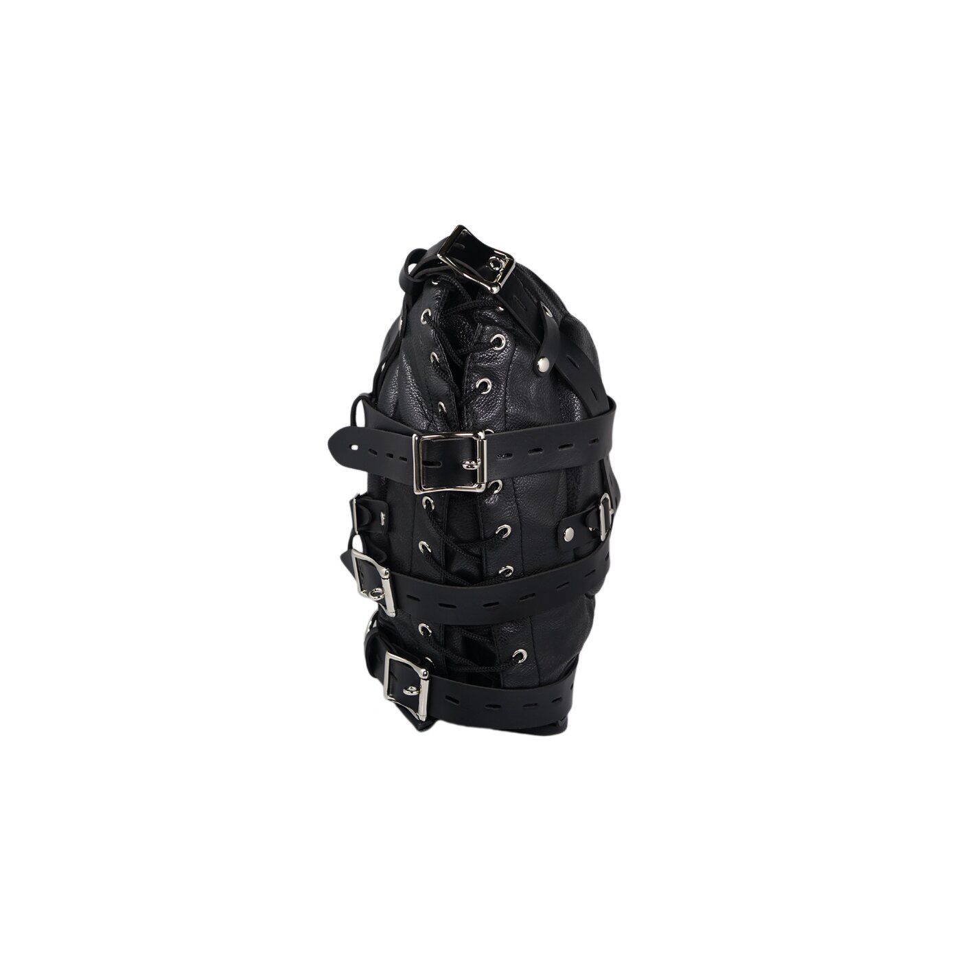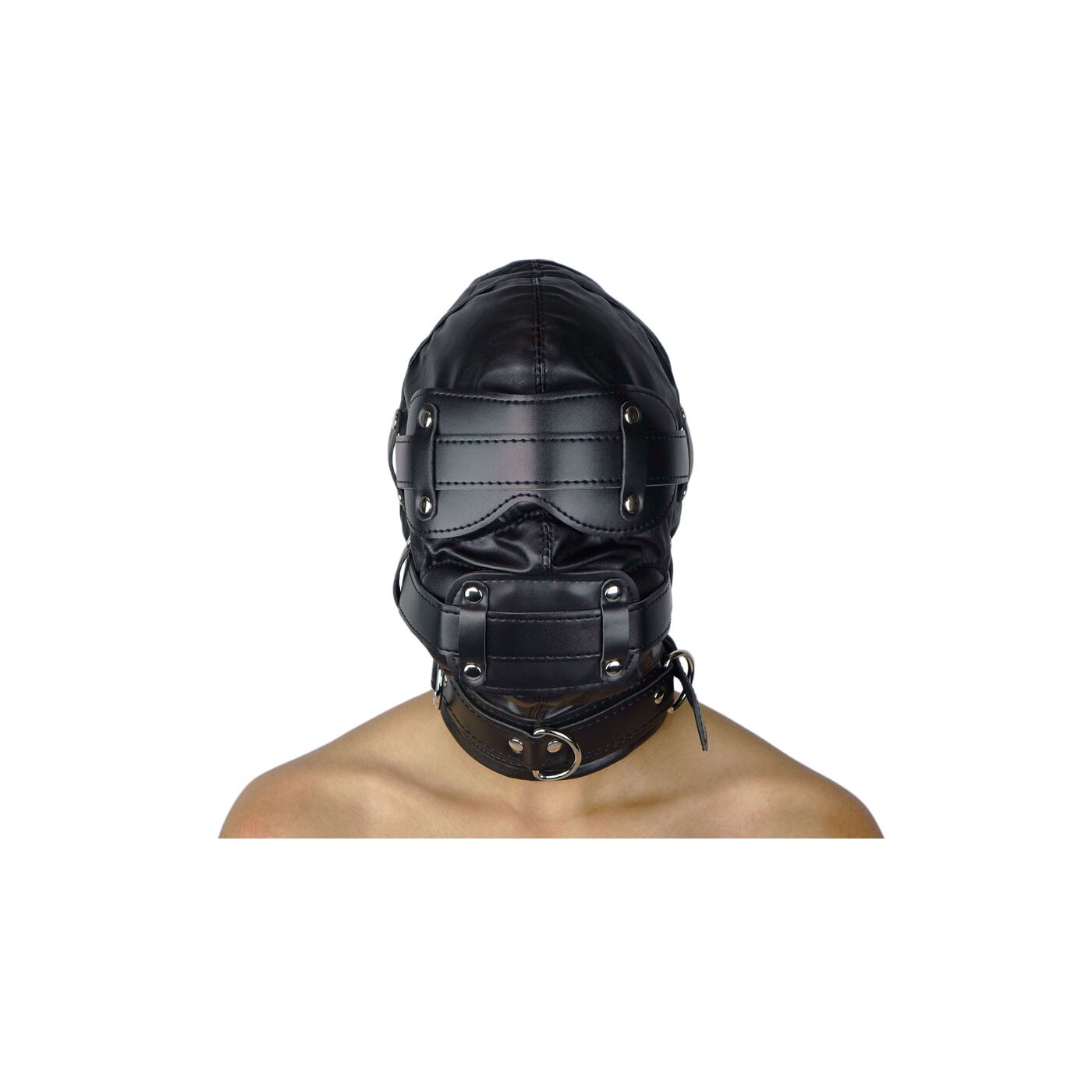 Diese Maske ist perfekt für diejenigen, die Autorität und Zurückhaltung vollständig ausleben möchten. Die Maske ist ohne Augenlöcher gestaltet, dick gepolstert und schallgedämmt, wodurch der Träger vollständig von der Außenwelt abgeschnitten wird. Besonders die Schalldämmung im Ohrbereich sorgt für völlige Isolation.